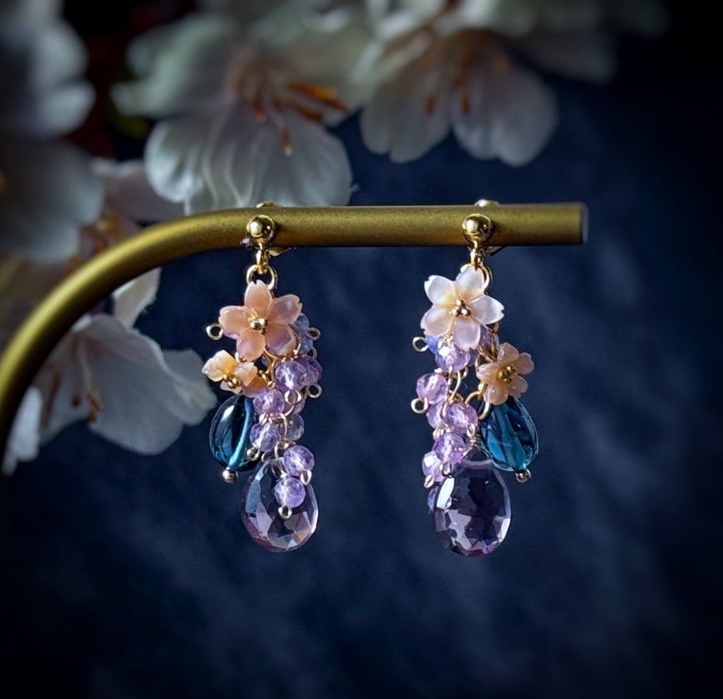 仕様素材:ピンクシェル、ハイドロクォーツ(人工)、アメジスト、ロンドンブルートパーズ、タンザナイト